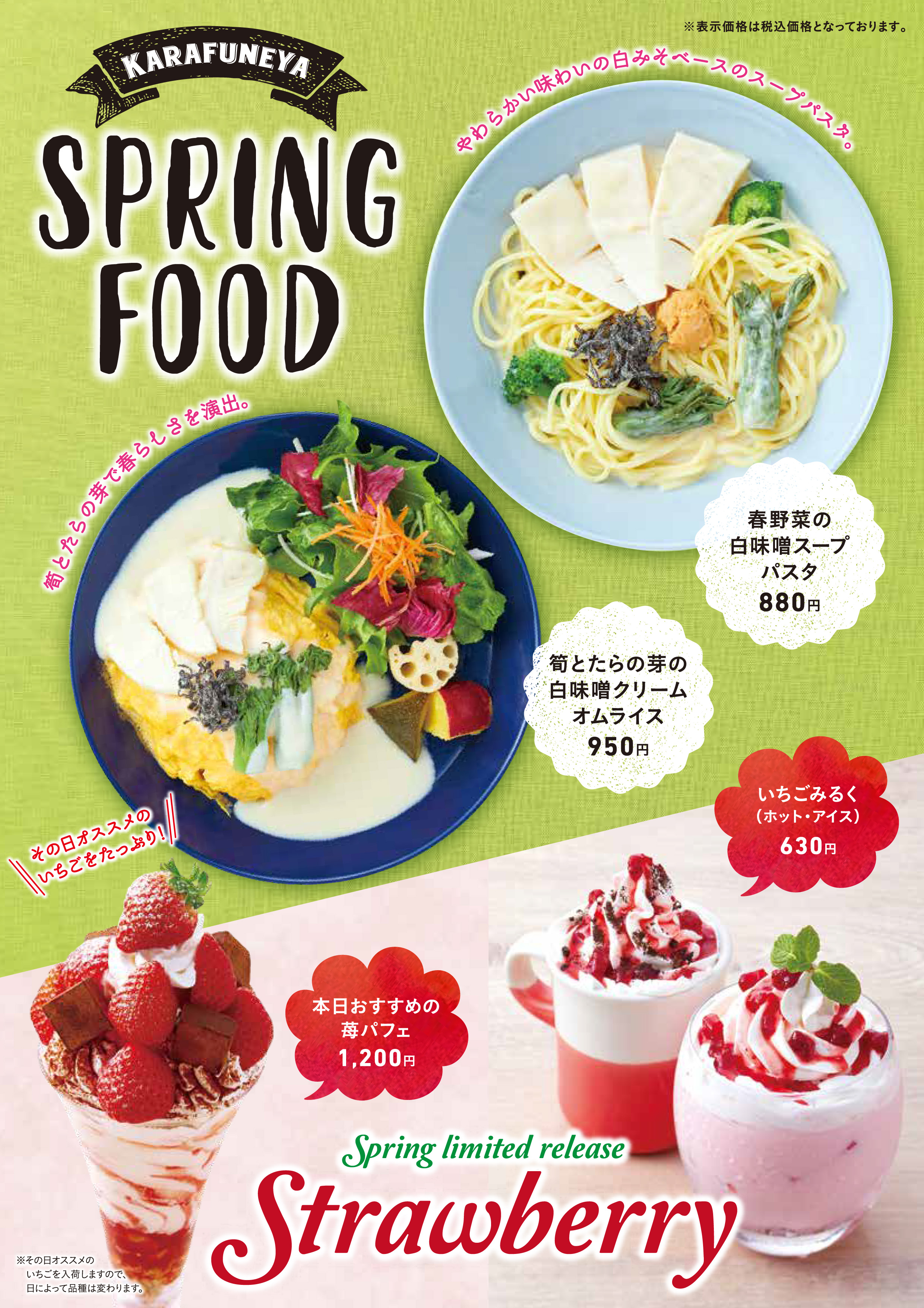 からふね屋珈琲で「白みそ香る春旬菜フェア&ストロベリーフェア」を開催します。(~5/末)