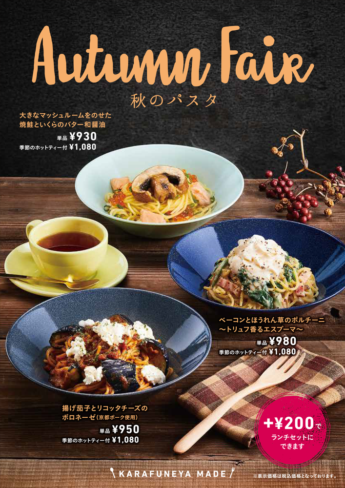 からふね屋珈琲 「秋のパスタフェア」のご案内