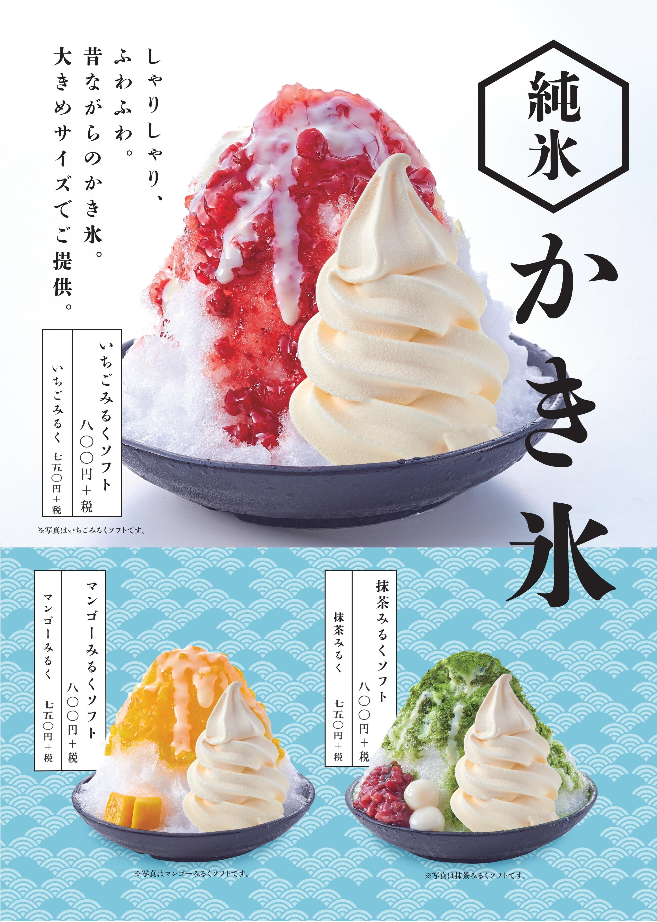 いちごみるく・抹茶みるく・マンゴーみるく 627~750円